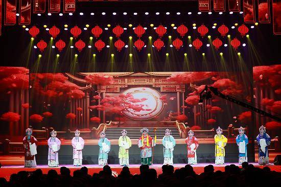 第三篇章《龙马精神腾盛世》迸发着昂扬的文化活力。器乐合奏《战马奔腾》由时良等乐手激情演奏,二胡与鼓乐交织,现场仿佛万马嘶鸣,气势如虹;武术《中国脊梁》由临沂砺成体校贾祥宁、密启山等师生演绎,刚劲有力的招式彰显华夏少年的气魄;相声《马到功成》中,徐嘉帅、王昌运以幽默诙谐的表演传递“马到成功”的美好祝福;戏曲联唱《梨园华彩颂》汇聚孔庆扬、顾文英等名家,黄梅戏、京剧、柳琴戏、豫剧四大剧种同台献艺,尤其是柳琴戏特有的“拉魂腔”,韵味醇厚,引得满堂喝彩。